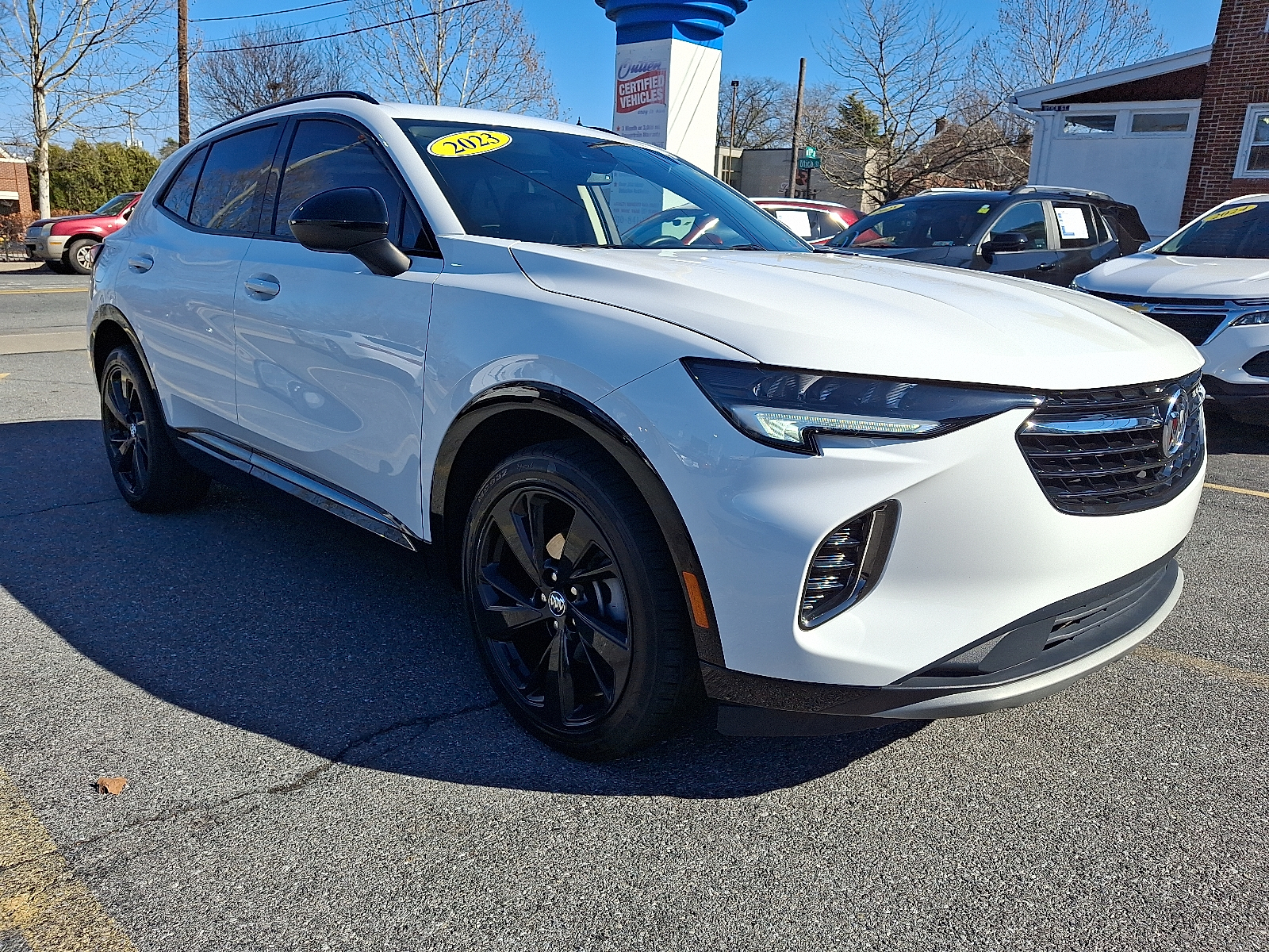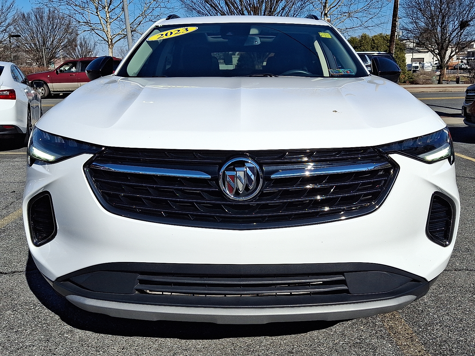 2023 Buick Envision Essence — White. Experience refined comfort and confident capability in this compact SUV that blends luxury touches with everyday practicality. Standard AWD, ABS, traction and stability control deliver sure-footed handling, while a full suite of airbags and an electronic parking aid keep you safe and secure. Enjoy premium comfort with leather seats, heated front seats, driver power adjustments and a heated leather steering wheel — plus keyless entry and remote ignition with climate control for easy, connected starts. The Bose-ready audio with subwoofer fills the cabin, and anti-theft features protect your investment. Spacious interior dimensions, a full-size spare, automatic headlights and a solid warranty package (36/36 basic, 60/60 powertrain, 72/100 rust) round out a smart, stylish choice for drivers who want refinement without compromise. Stop by today for a test drive.